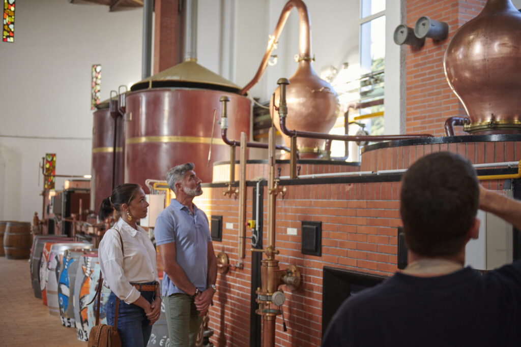 Plusieurs maisons accueillent les visiteurs durant cette période active. Frapin opère à Segonzac, où la famille entretient des vignobles depuis 1270. Les raisins cultivés sur le domaine produisent des vins qui évoluent dans des alambics charentais traditionnels, visibles par les clients qui réservent des visites pendant les heures de travail. Les bâtiments du domaine se regroupent autour de cours où les poules se promènent librement et les chats somnolent sous le soleil hivernal. Les Maisons Boinaud à Angeac-Champagne et Bourgoin à Saint-Saturnin ouvrent également leurs installations, offrant la possibilité d’observer les distillateurs à l’œuvre.