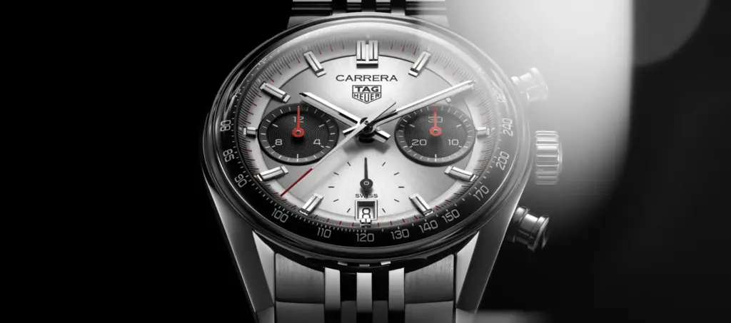 Le chronographe Carrera revient dans un design saisissant de 39 mm, ravivant l’esthétique convoitée « Panda » de la Heuer 7753 SN avec une touche contemporaine. Son cadran argenté soleillé est ponctué de deux sous-cadrans bleu-noir, assurant un contraste et une lisibilité nets, rehaussés par le verre saphir bombé et le boîtier sans lunette qui honorent la recherche de clarté de Jack Heuer au poignet. Le bracelet en acier redessiné, doté de sept rangées de maillons en grains de riz polis, fait ses débuts sur une Carrera de 39 mm dotée d’un boîtier en cristal.
