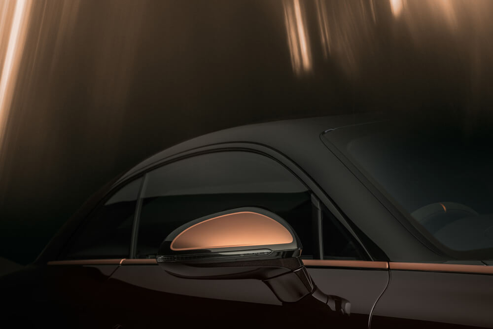 Autour des sections inférieures du corps, les accents en or rose en satin attrapent la lumière d’une manière subtile mais indubitable. Ils ornent la calandre avant, continuent le long de ce que Bentley appelle la «ligne de bonnet sans fin» et s’étend aux capuchons miroir et au kit de carrosserie inférieur. Même les roues de 22 pouces reçoivent le traitement tri-tonal, abritant des freins en céramique en carbone massifs avec des étriers noirs discrets. L’effet est dramatique sans être Gauche – un équilibre difficile à trouver lorsque vous travaillez avec des métaux précieux.