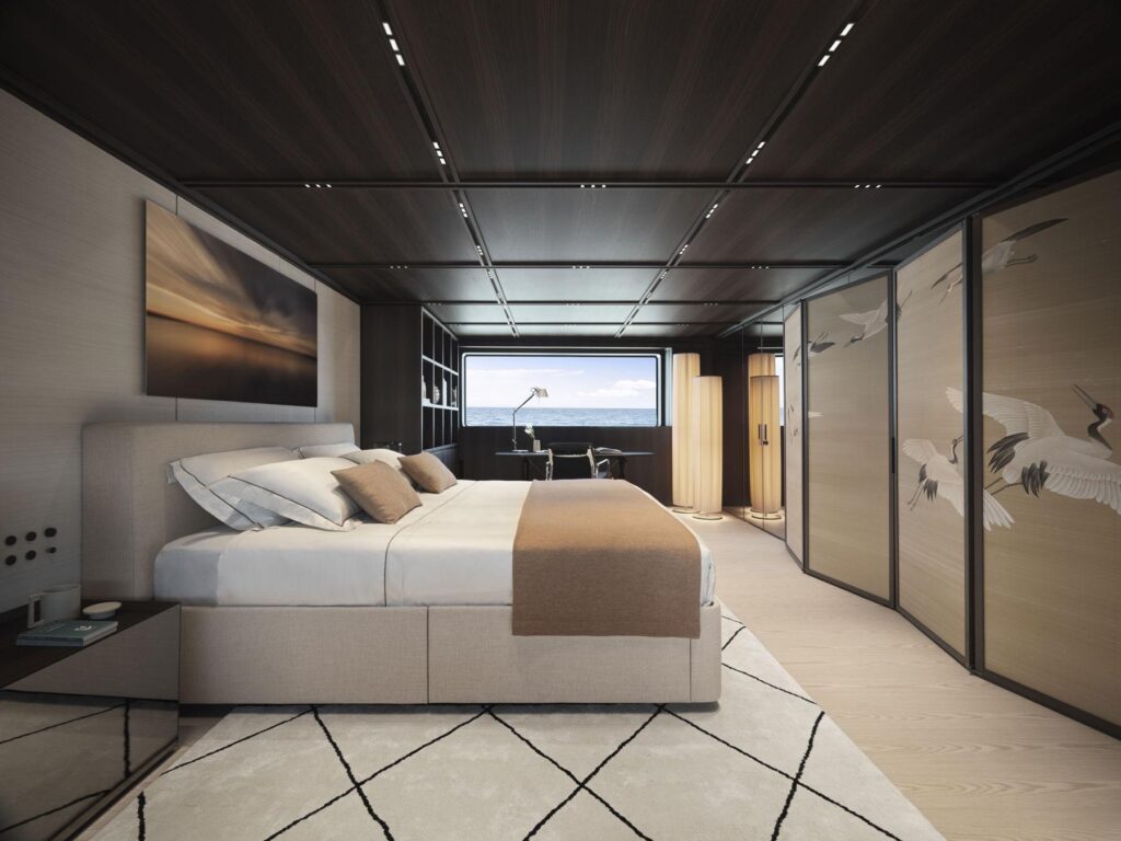 Au-delà de la suite penthouse, quatre autres cabines invités offrent des proportions généreuses et un niveau de finition qui ne serait pas déplacé dans un hôtel cinq étoiles à terre. Chaque espace a reçu son propre sentiment de luxe, avec une literie de qualité, un éclairage réfléchi et suffisamment d’espace pour déballer et s’installer correctement.