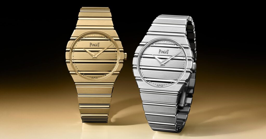 La Polo 79 de Piaget démontre comment un design d’inspiration sportive peut être raffiné sans perdre de caractère. Le boîtier en forme de coussin et le bracelet intégré restent fidèles à l’original, tandis que les matériaux et les finitions actualisés le placent résolument dans le présent. Les versions plus petites sont dotées de cadrans en nacre et de subtils détails en diamant, équilibrant l’ADN athlétique avec une sophistication discrète.