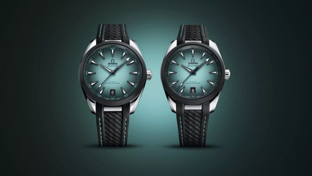 La Turquoise Seamaster Aqua Terra d’Omega a dévoilé deux nouvelles interprétations de sa ligne Seamaster Aqua Terra, introduisant des cadrans turquoise qui capturent l’essence des eaux tropicales. Disponible dans les configurations 38 mm et 41 mm. Le cadran vernis turquoise, accentué par un dégradé noir qui évoque la lumière du soleil filtrant à travers les profondeurs des océans.