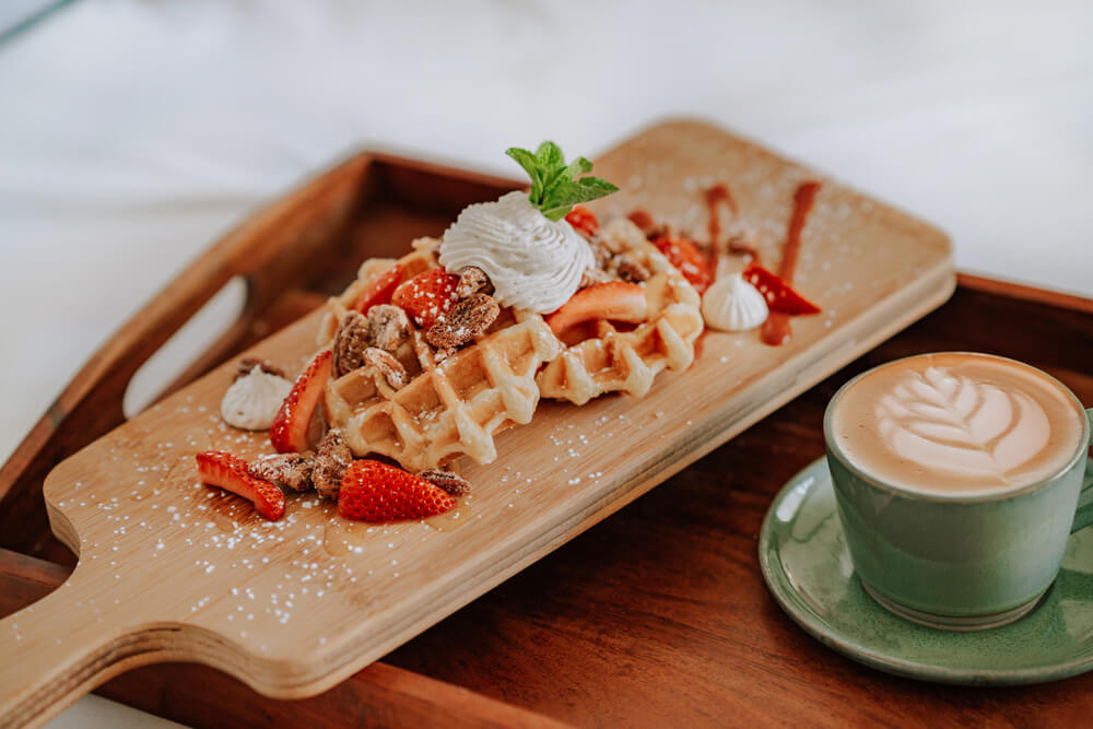 Le Coachella Valley Classic illustre cette approche – deux œufs de chino parfaitement cuits jumelés avec du bacon artisanal Nueske et du toast au levain fait maison. Les pommes de terre au lever du soleil, assaisonnées d’herbes désertiques, fournissent un élément salé satisfaisant, tandis que l’orange et la fraise fraîche ajoutent de la luminosité. Plutôt que des convives écrasants avec une taille de portion, le plat atteint l’équilibre grâce à une qualité et à un placage soigneux.