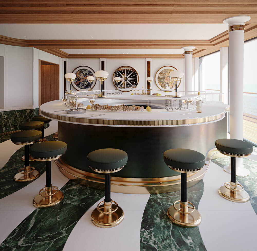 Les intérieurs du navire sont l’œuvre de l’architecte Maxime D’Angeac, qui est directeur artistique d’Orient Express. Sa vision rend hommage au patrimoine maritime français tout en le réinterprétant à travers une lentille contemporaine. Inspiré par l’âge d’or des revêtements océaniques, notamment l’emblématique Normandieet réalisé en collaboration avec les meilleurs artisans de la France, le design fusionne l’artisanat traditionnel avec une élégance moderne pour créer des espaces qui se sentent à la fois intemporels et contemporains.